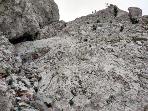 Des del cim del Calderer podem baixar per la canal que va directament a la tartera.